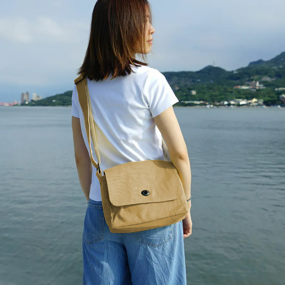 堅固的雙層帆布放台相機很穩當,釦子一扭將包鎖住,就算像小梅一樣蹦蹦